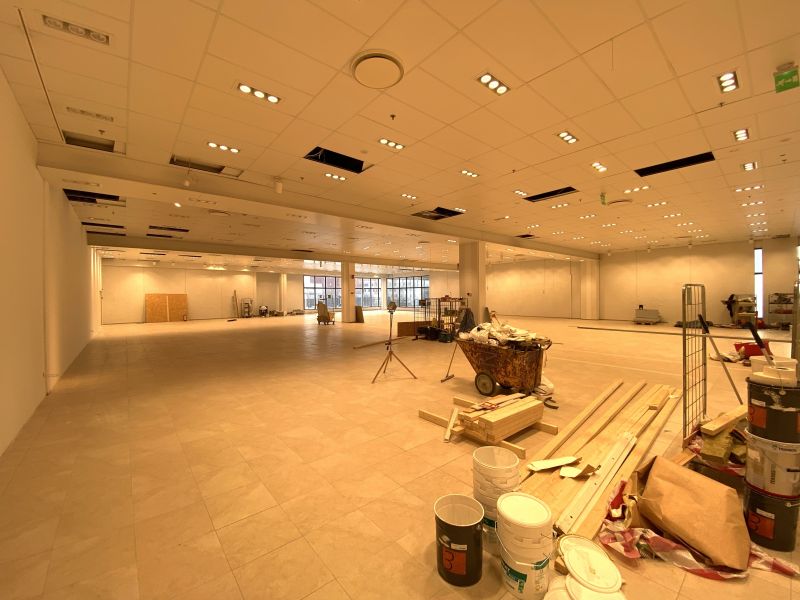 Megakeskuksen yläkerrassa erinomainen tila esim. kuntosalille. Isot ikkunat aseman suuntaan, korkea tila!