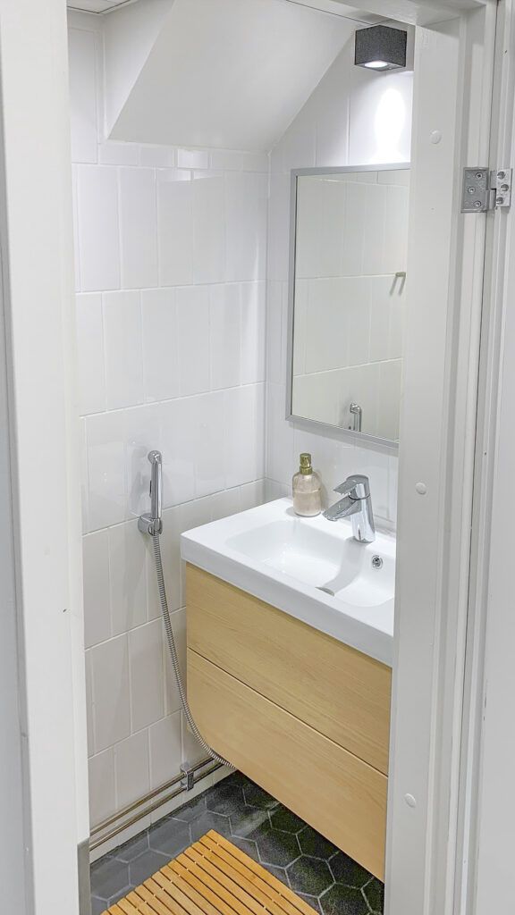 Sijainti – no, kuinka se voisi olla keskeisempi – kaikki palvelut, metro, juna, ratikat, lounaat, viihde yms. – kaikki aivan vieressä. Sateen sattuessa kadun yli ja Kampin Keskuksen kautta sisäkulun kautta vaikka minne.