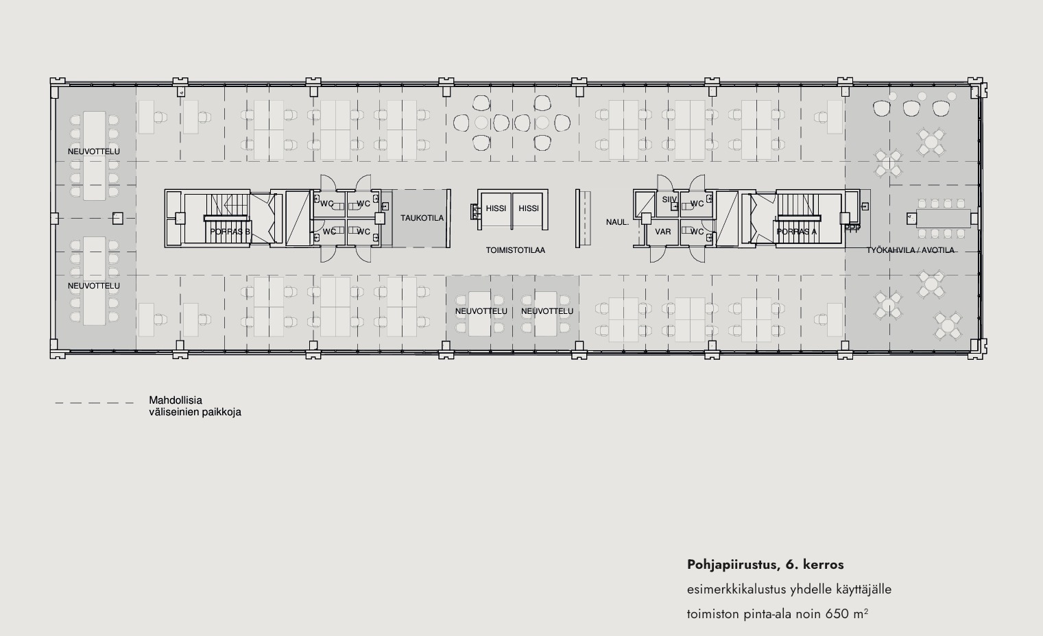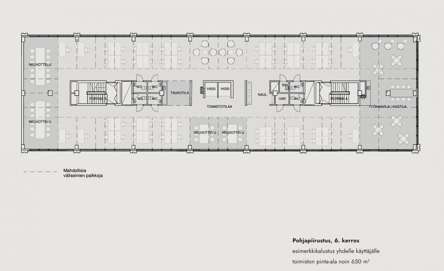 Nyt vapautuu ainutlaatuiset toimitilat Helsingin Kalliossa! Tämä täysin remontoitu rakennus kunnioittaa japanilaista tyyliä ja tarjoaa modernit sekä avarat toimitilat vuokralaiselle. Koko rakennus on tällä hetkellä tyhjä, joten tämän saman toimitilan voi saada joko 1 tai 2-kerroksesta. Tiloissa on suuret lattiasta kattoon ulottuvat ikkunat, ja lopulliset viimeistelyt voidaan räätälöidä vuokralaisen toiveiden mukaan. Tässä tilassa yhdistyy avaruus ja joustavuus: tilaa on runsaasti, mutta se voidaan myös jakaa pienempiin osiin yrityksen tarpeiden mukaan. Tilassa on lisäksi wc-tilat ja taukohuone työkeittiöllä. Kiinteistön toimitilat vaihtelevat koosta 150–650 m² välillä.