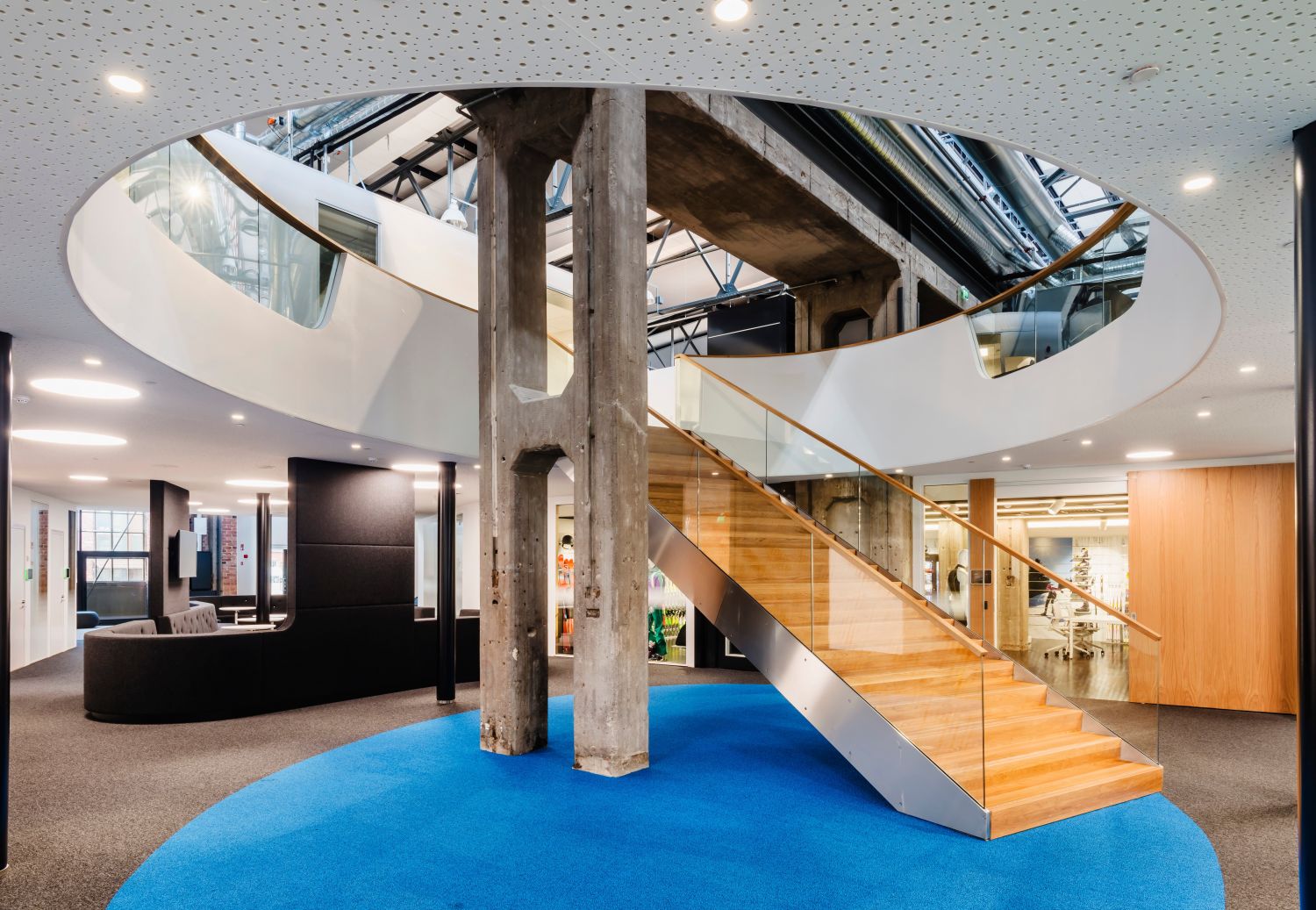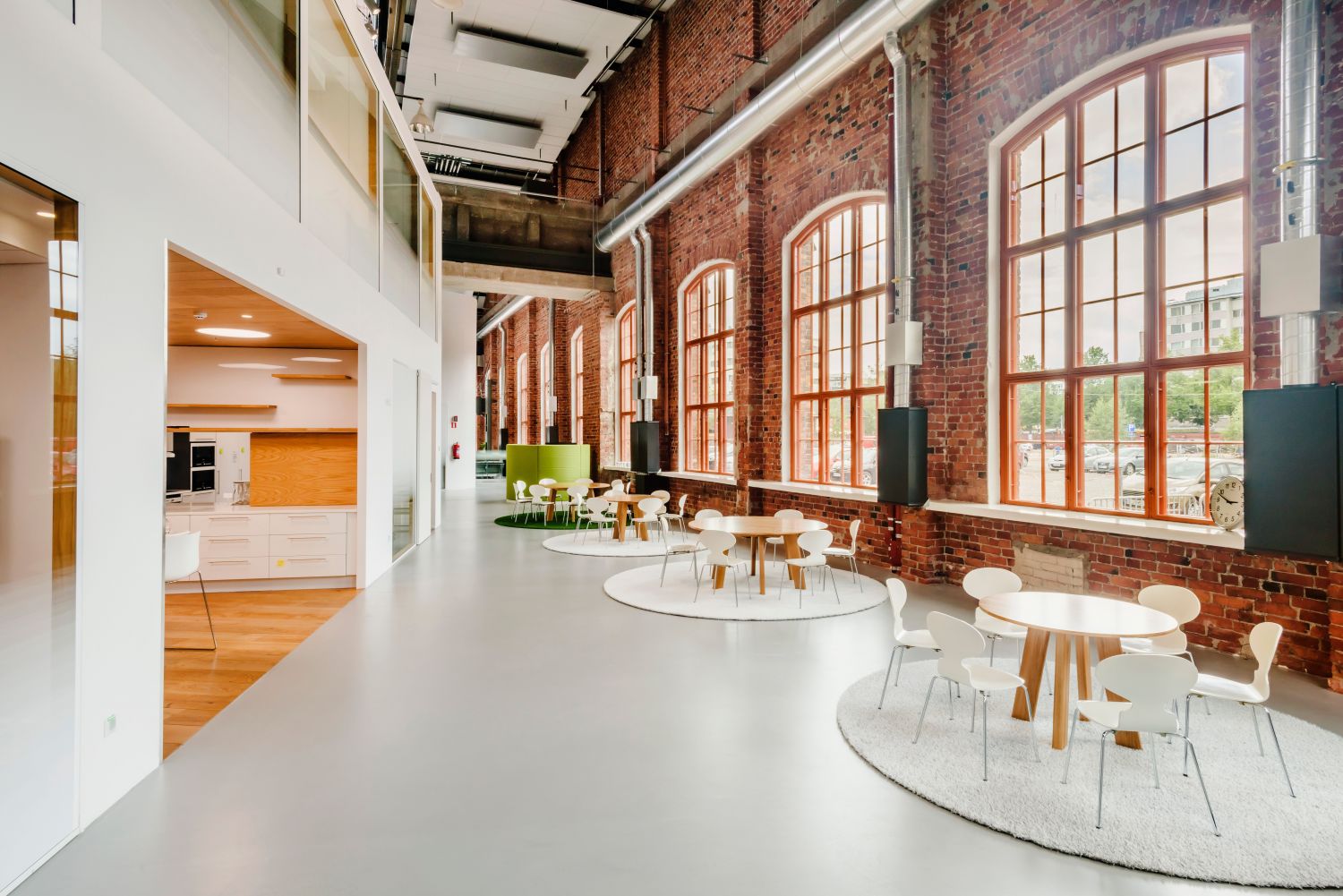 Ainutlaatuisuutta henkivät toimitilat koko talon vuokralaiselle. Ensimmäisessä kerroksessa upea aula ja vastaanotto toivottavat työntekijät sekä vierailijat tervetulleiksi. Kerroksesta löytyy myös useita neuvottelutiloja ja showroomeja sekä hieno lounge-/monitoimitila. Olemassa oleva Amer Sportsin myymälä voidaan muuttaa myös toimistotilaksi.