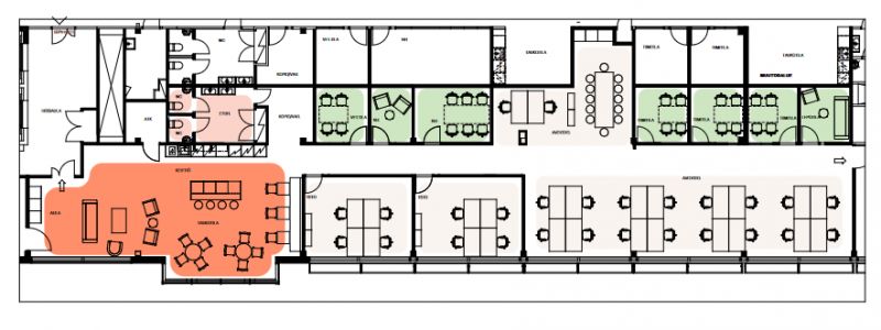 Vuokrattavana moderni AIna Valmis-konseptin mukainen toimisto ( 322 m2). 5.kerrosen toimisto on täysin remontoidu. Avo-/kombitoimistossa on useita vetäytymistiloja ja isompi keitti-/lounge tila. Kohteessa kaikki tarvittavat palvelut ml aulapalvelu, vuokrattavia neuvottelutiloja, lounasravintola, kuntosali, pyöräparkki ja yhteiskäyttöiset puku- ja suihkutilat.