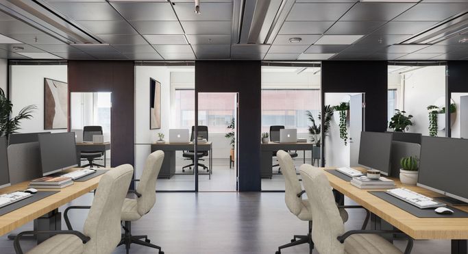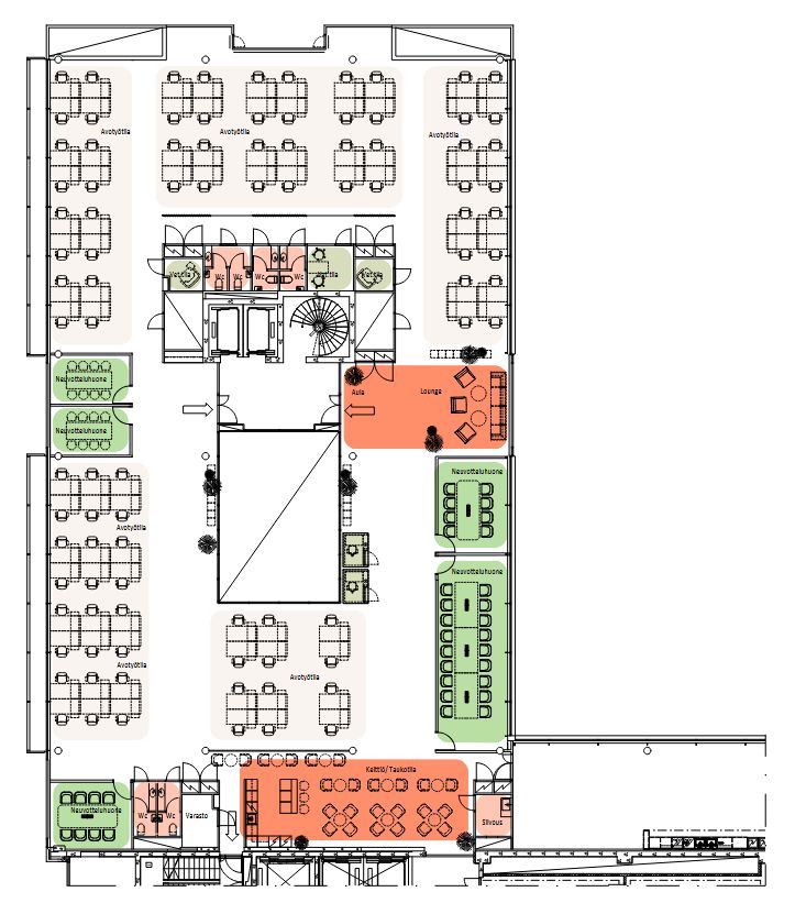 Ruoholahden ytimestä vuokattavana AIna Valmis-konseptin mukainen 5.kerroksen toimisto (898 m2 ). Täysin remontoidussa tilassa on avotilan lisäksi 2 huonetta ja neuvottelutila sekä keittiö-/lounge alue.