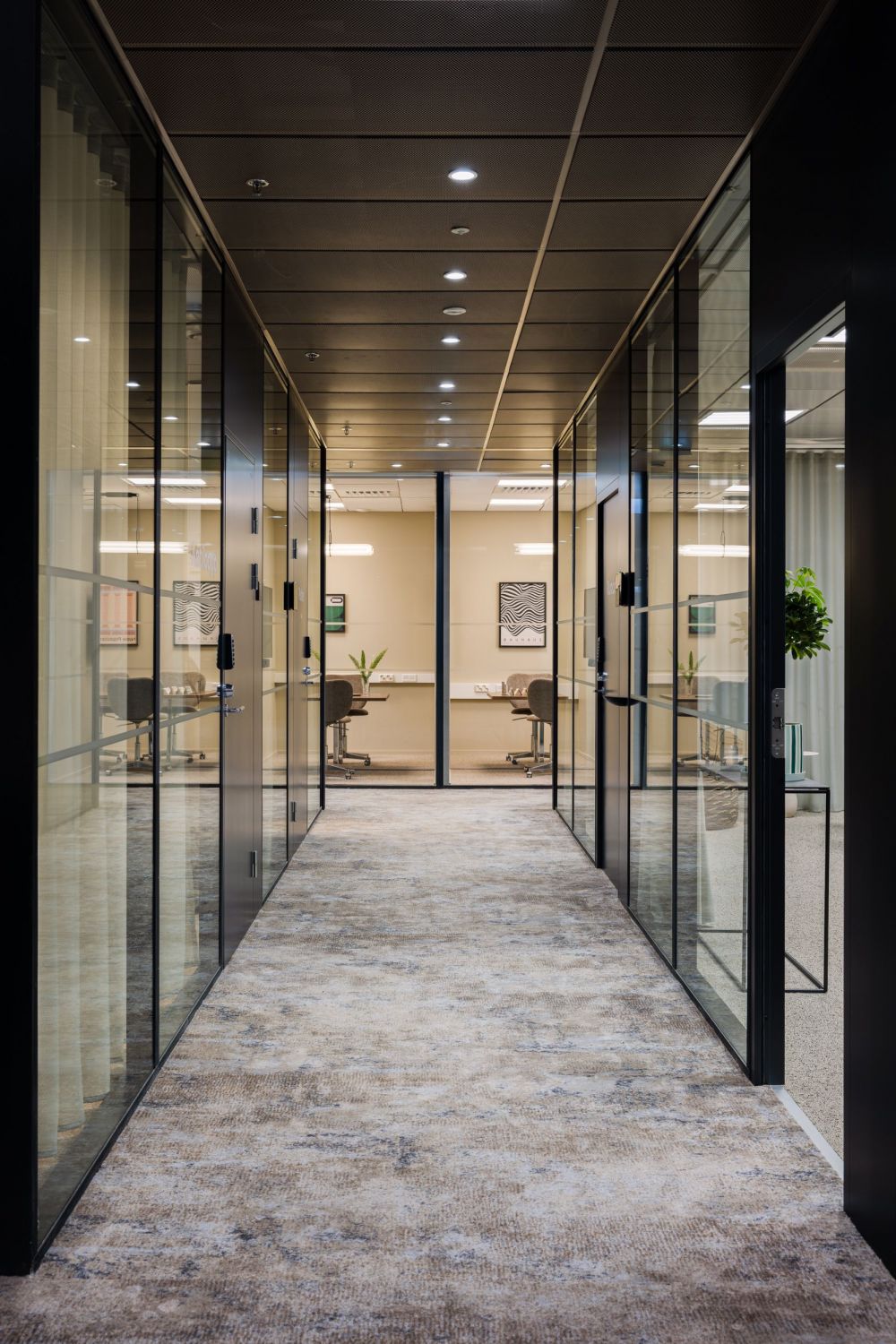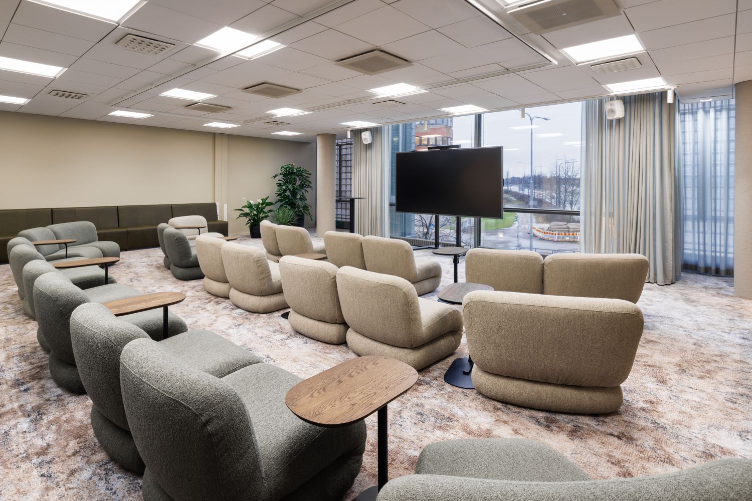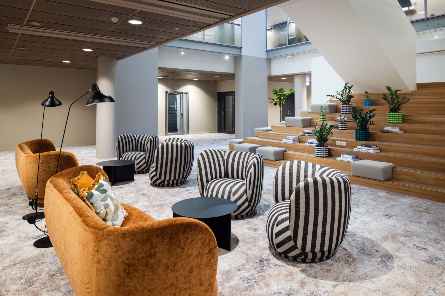 Kiinteistössä aulavastaanotto, erillisiä neuvotteluhuoneita, ravintola, kuntosali, ym.