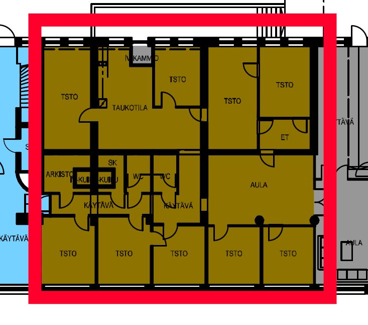 Tämä 256 m² toimistotila sijaitsee kiinteistön 1. kerroksessa. Toimistossa on oma keittiö- ja wc-tila. Tila on huoneellinen, ja se soveltuu hyvin esim. sote-/vastaanottokäyttöön. Huoneissa on desibeliovet ja pako-ovet.