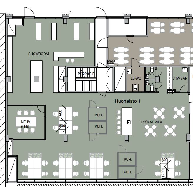 Tämä 306 m² tila sijaitsee kiinteistön katutasossa. Tila soveltuu showroomiksi, toimistokäyttöön tai liiketilaksi.