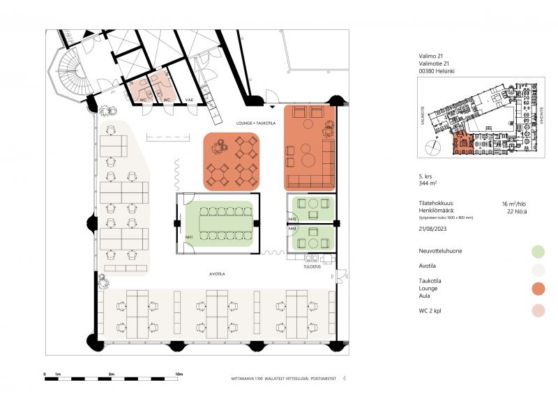 Äskettäin remontoitu viidennen kerroksen toimisto. Tilassa avotilaa ja muutama neuvottelutila.