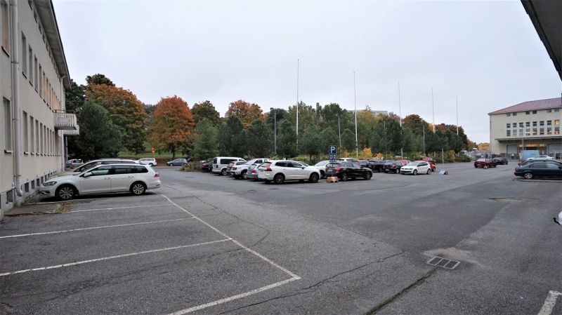 Kiekkopaikat 2h pihalla, jonka lisäksi kadunvarsipysäköinti