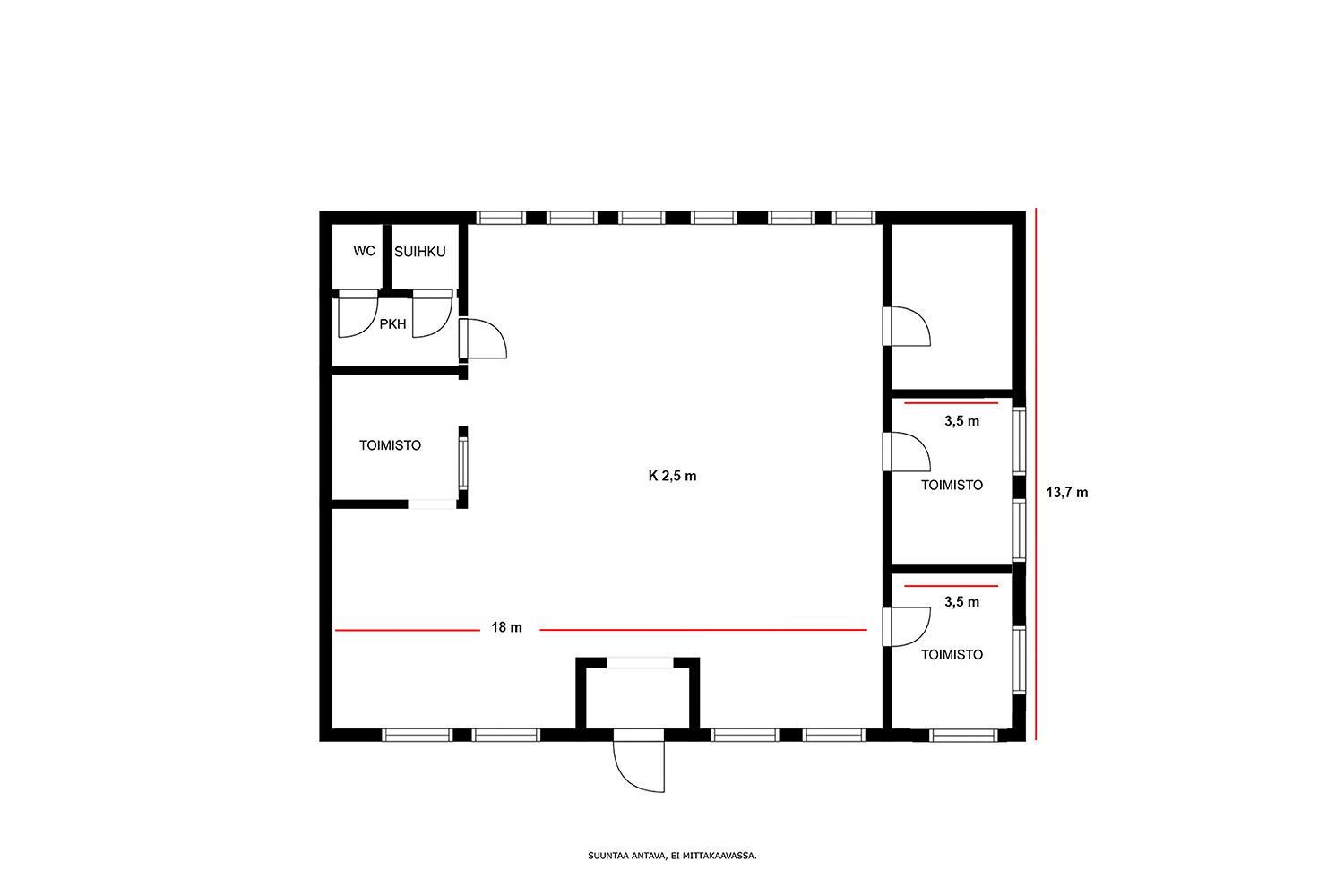 Huoneistoselitelmä: Liiketila/toimitila, 3 toimistohuonetta, sosiaalitilat