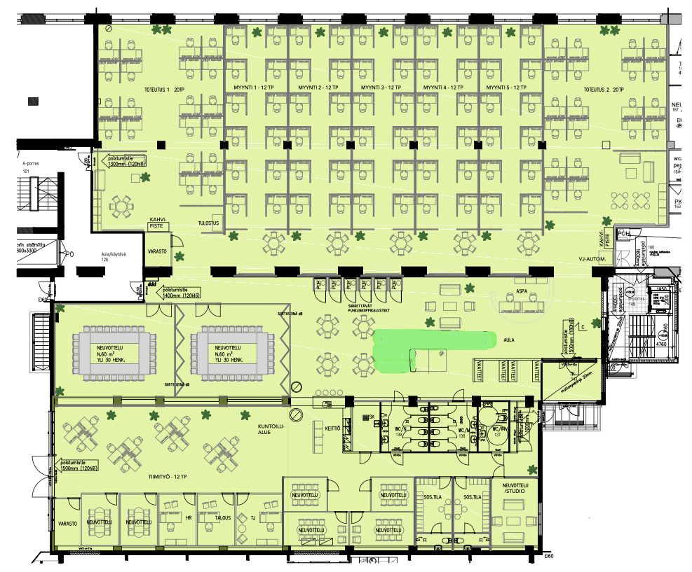 Kiinteistöllä on runsaasti parkkipaikkoja ja siellä toimii myös lounasravintola josta saa catering-palveluita.