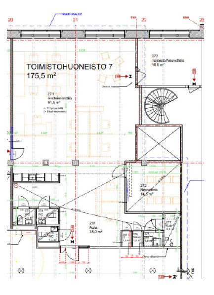 Haarlankadulta historiallisesta tehdasmiljööstä modernia täysin remontoitua korkeaa toimistotilaa raitiovaunureitin varrelta.
