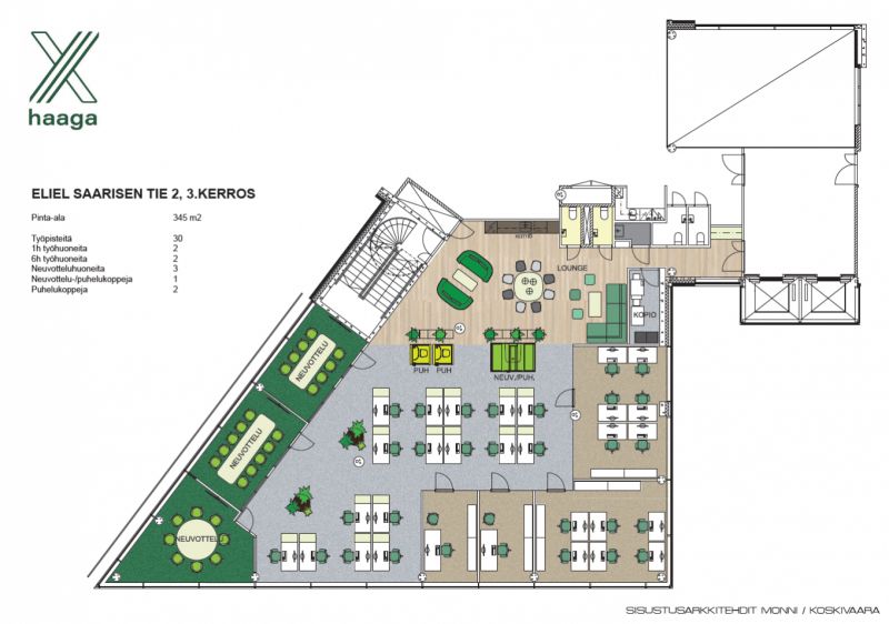 Avara ja valoisa 3. kerroksen 345 m² toimistotila modernista toimistotalosta, Pohjois-Haagasta.