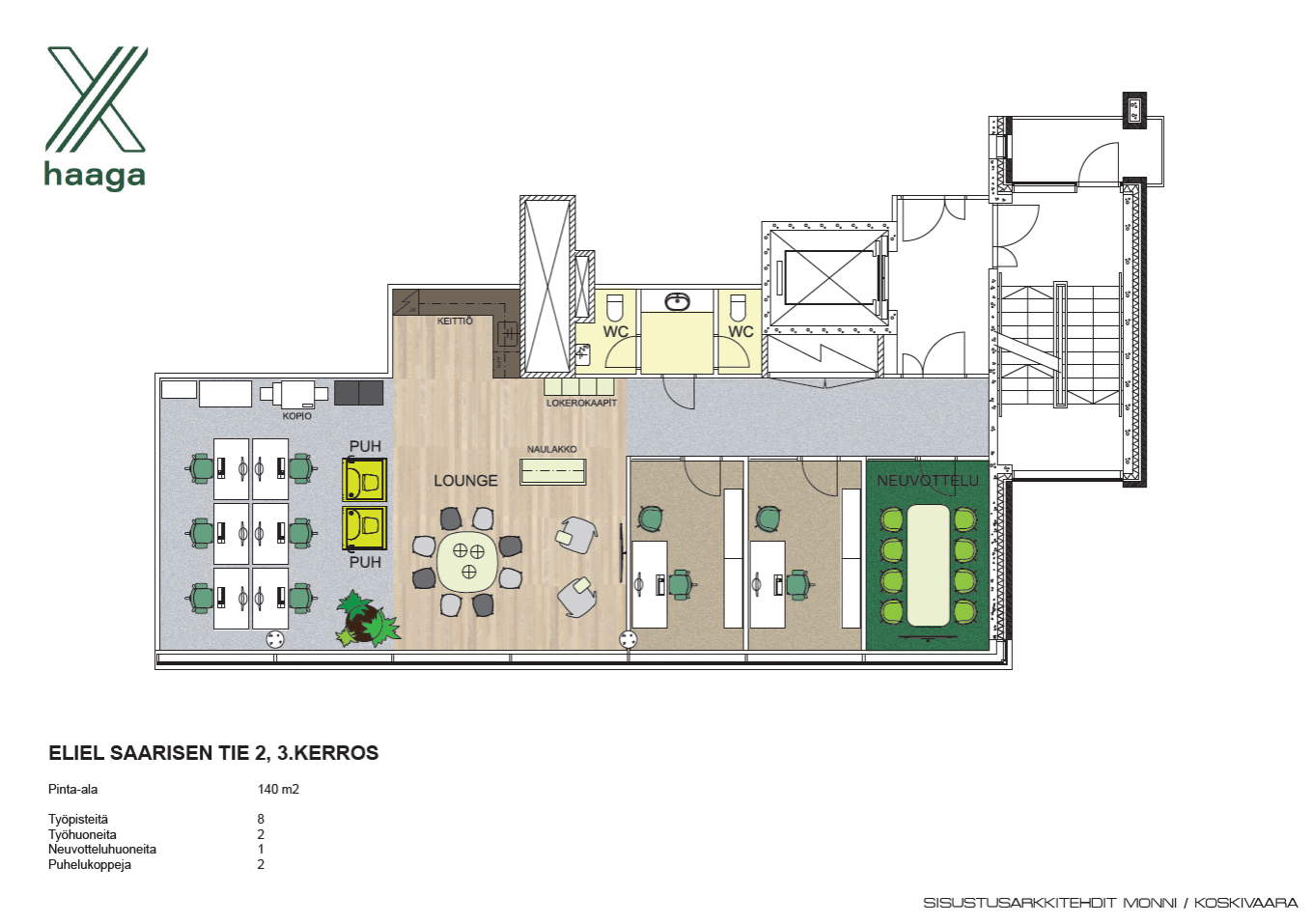 Avara ja valoisa 3. kerroksen 140 m² toimistotila modernista toimistotalosta, Pohjois-Haagasta.