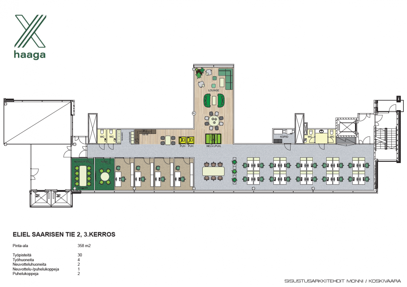 Avara ja valoisa 3. kerroksen 358 m² toimistotila modernista toimistotalosta, Pohjois-Haagasta.