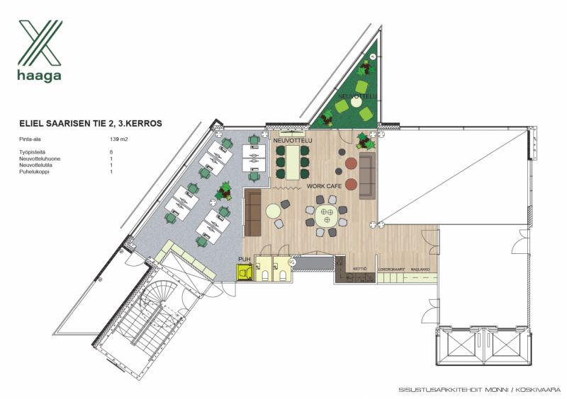 Avara ja valoisa 3. kerroksen 139 m² toimistotila modernista toimistotalosta, Pohjois-Haagasta.