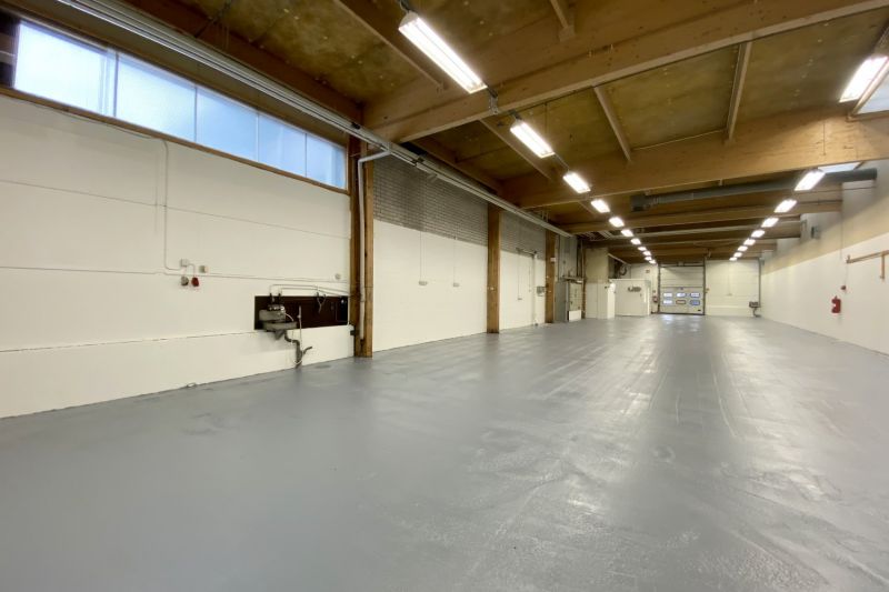 Hallin vapaa korkeus on 4,2 m, lattia on betonia. Nosto-ovi on mitoiltaan 4 m (korkeus) x 3 m (leveys). Tilassa voimavirta. Viereiseen toimisto- tai sosiaalitilaan 240 m² (ks. kuvat ja pohjapiirros) kuljetaan sisäkautta tuotanto- tai varastotilasta. Wc:t.
