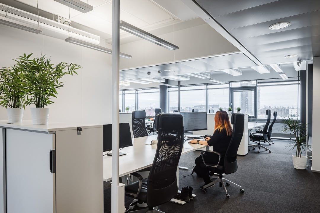 Tyylikästä ja modernia toimistotilaa - pohjakuva suuntaa-antava sillä tilat muokataan aina kunkin käyttäjän tilatarpeiden mukaisiksi ja näyttäviksi. Ilmoituksen toimistokuvat ovat talon muista tiloista.