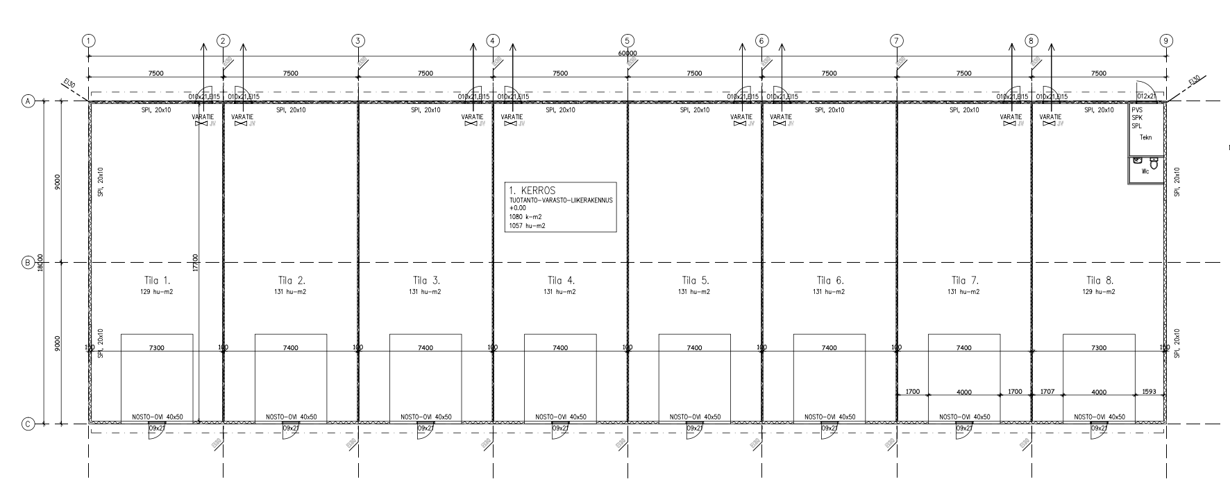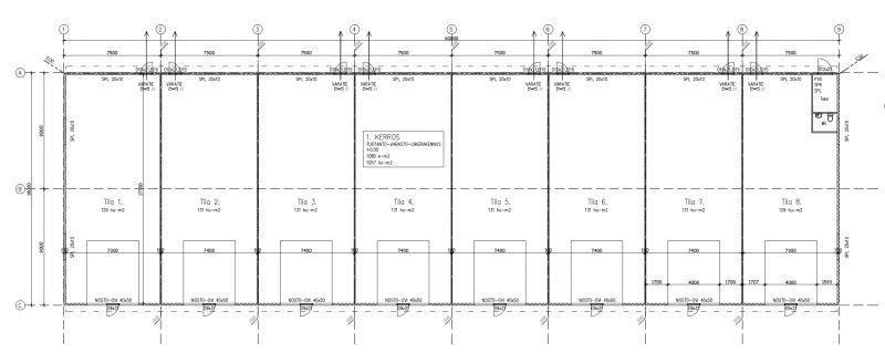 131m2 tila on 1179 euroa/kk + alv. (yksi nosto-ovi)