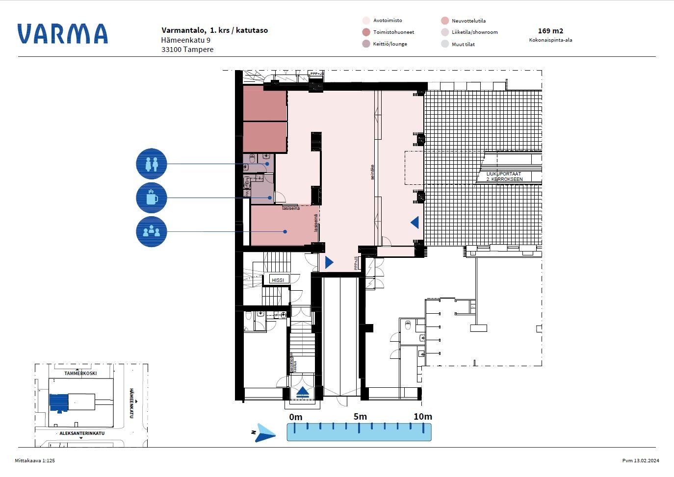 Varmantalo sijaitsee erinomaisella paikalla Tampereen ydinkeskustassa, lyhyen matkan päässä rautatieasemasta. Kiinteistön toimistotilat ovat tilavia ja tarjoavat yrityksille laadukkaat puitteet. Liiketila vilkkaan Hämeenkadun varressa katutasossa. Oma taukotila ja wc. Talosta hissiyhteys parkkitalo P-Hämppiin.