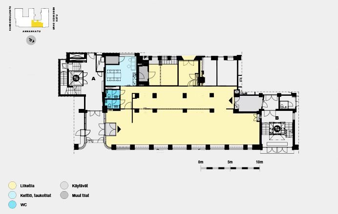 Vuokrataan korkeatasoista liiketilaa/toimistotilaa nykyaikaisella tekniikalla Kampissa Annankadun ja Urho Kekkosen kadun kulmassa. tilaan on sisäänkäynti Annankadun puolelta josta esteetön kulku. Kiinteistössä on kattavat kokous- ja aulapalvelut sekä ravintola. Tilat räätälöidään käyttäjän tarpeen mukaan. Huom. Kuvat ovat yleiskuvia kiinteistön tiloista. Ota yhteyttä ja sovi esittely, palvelumme on tilanhakijoille maksuton.