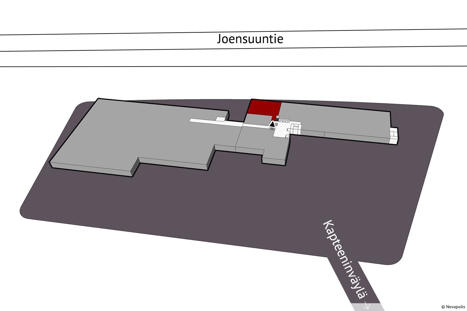 Erinomainen sijainti on Valtatie 9:n varrella, vain 4 km päässä Valtatie 5:stä. Kuopion lentokenttä toimii aivan vieressä. Kuopion keskustaan ajaa moottoritietä pitkin 15 minuutissa. Kiinteistölle on erinomaiset kulkuyhteydet autolla. Vuokrattavia pysäköintipaikkoja on piha-alueella reilusti ja lyhytaikaiseen pysäköintiin löytyy maksuttomia vieraspaikkoja aivan pääoven tuntumasta.