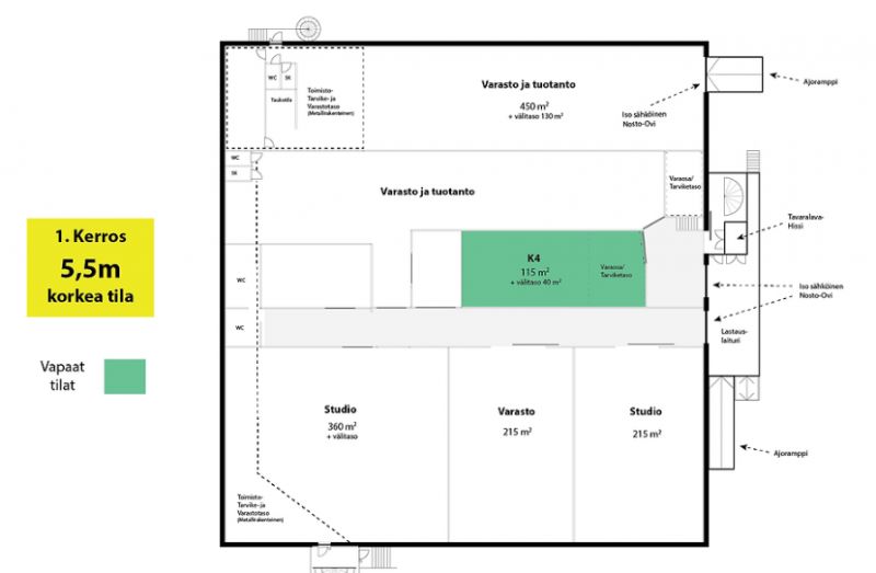 Konalassa Ruosilantiellä tarjolla asiallista ja erittäin siistiää varastotilaa. Tila on n. 5,5 metriä korkeaa ja sijaitsee lastauslaiturin vieressä.