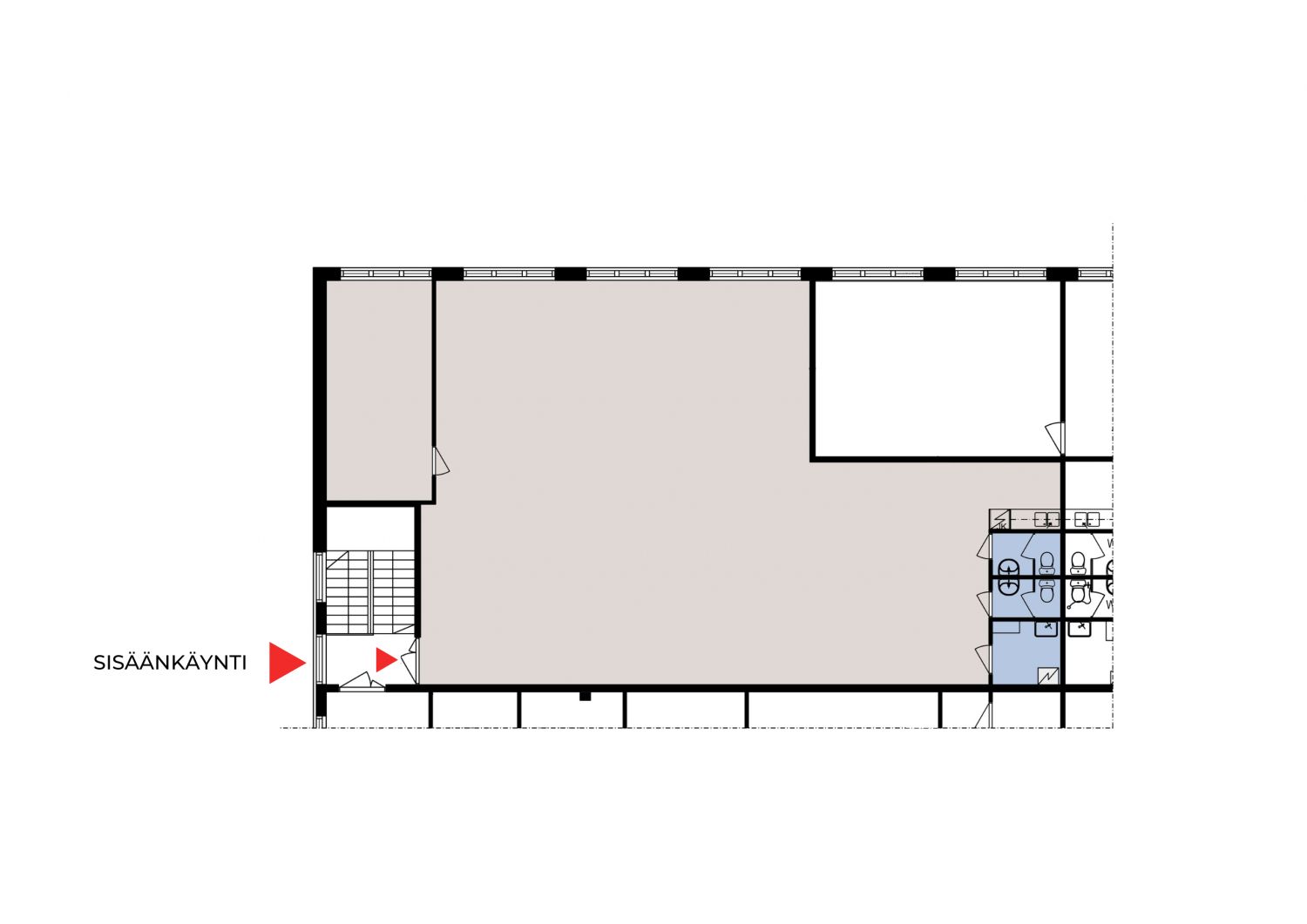 2. kerroksen toimistotila, jossa avotilaa, yksi toimistokoppi, keittokomero, kaksi wc:tä, siivouskomero. Vuokra 3135 € kuukaudessa.