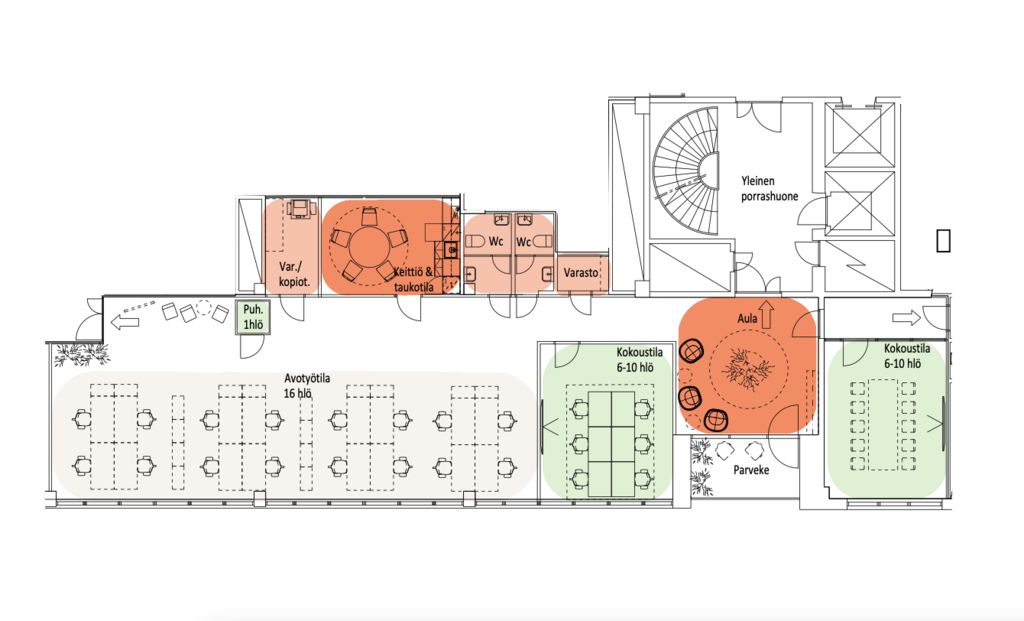 Modernia toimistotilaa Vallilan Pikselissä Helsingissä.