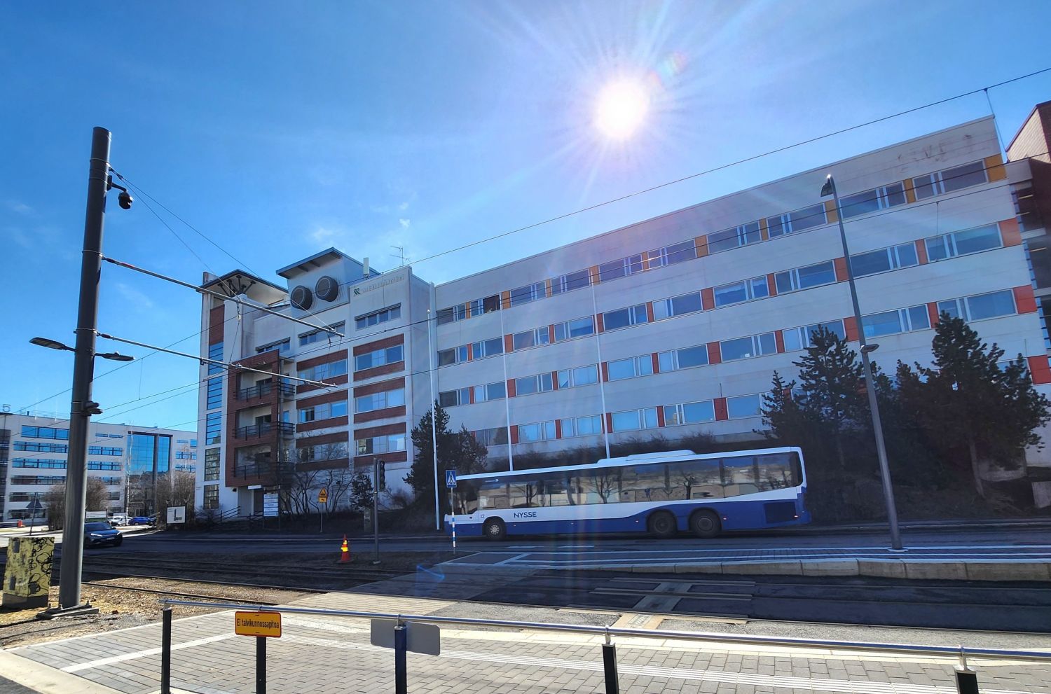 Tänne on helppo saapua ratikalla, bussilla tai omalla autolla. Lähimmät ratikka- ja bussipysäkit löytyvät talon edestä. Lähistöltä löytyvät myös hyvät palvelut kauppoineen, lounasravintoloineen ja kuntosaleineen. Omalla autolla kulkeville on parkkitilaa saatavilla pihasta.