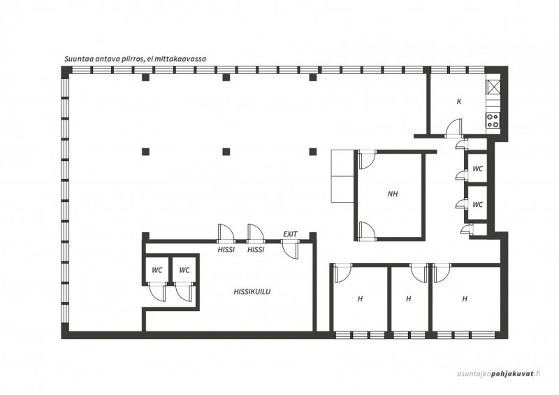 Avotilaa ja kolme huonetta, keittiö. Tila on muokattavissa.