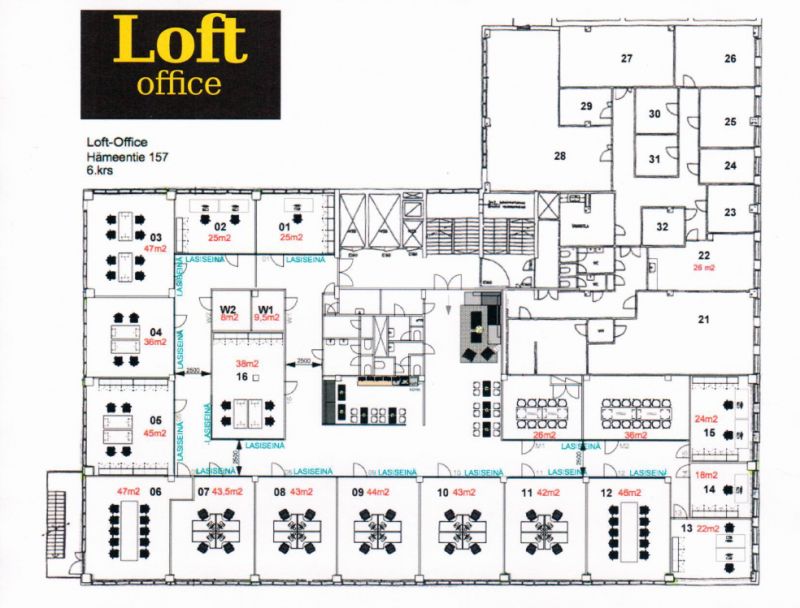 Loft Office pientoimistotilat sijaitsevat rakennuksen 6. ja 7. kerroksessa. Erikokoisia toimistotiloja tarjolla väliltä 10m2 - 138m2 ja vapaiden tilanne vaihtelee. TIEDUSTELE MITÄ VAPAANA.