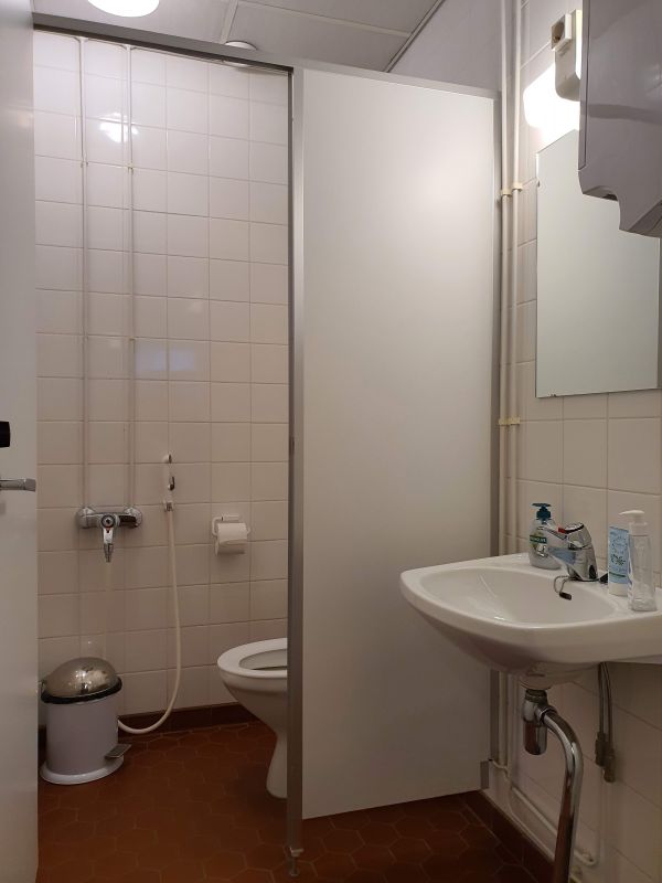Tilassa koneellinen ilmanvaihto ja jäähdytys. Avotilan lisäksi, keittiösyvennys, wc-tila, suihku ja siivouskomero.