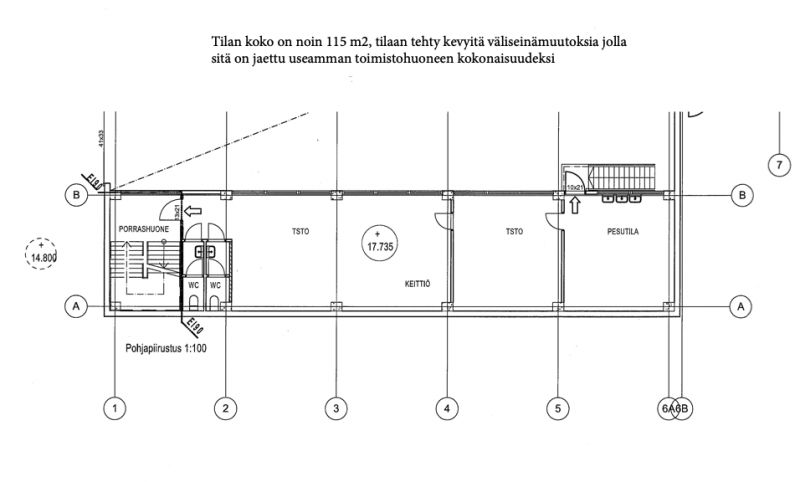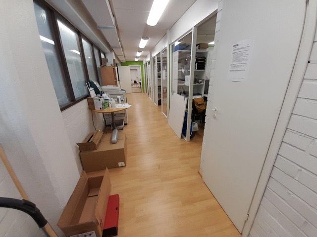 Toisen kerroksen toimitila jossa on kevyillä väliseinillä jaettuja huoneita. Tilassa on myös omat vessat. kulku tiloihin porrashuoneesta.
