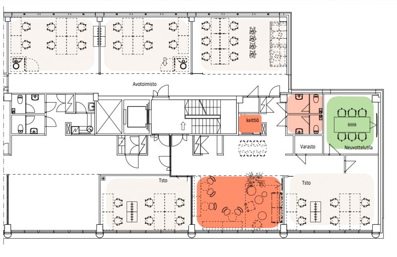 Vuokrattavana toisen kerroksen valoisaa ja tehokasta toimistotilaa.