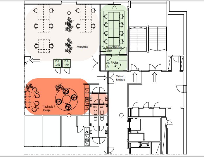 Vuokrattavana viidennen kerroksen valoisaa, avaraa avotoimistotilaa. Toimistossa on iso neuvotteluhuone.