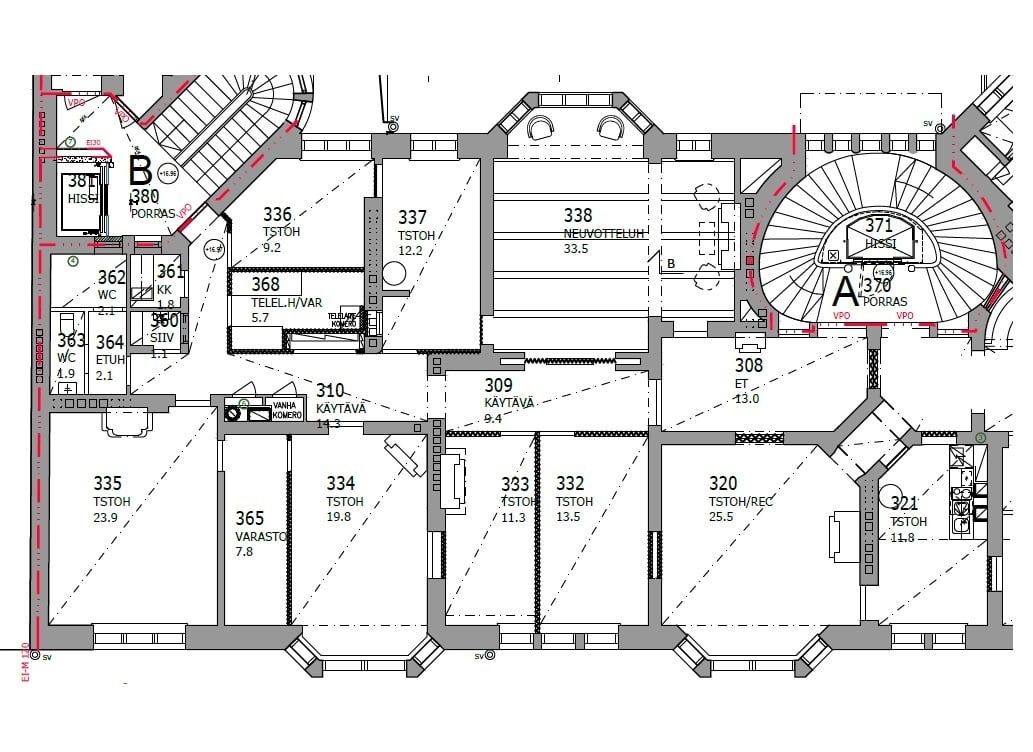Historiallisen upea toimisto, korkeat huoneet, näkymät sekä kadulle että sisäpihalle. Pinnat kaipaavat uusimista joiden muutos suunnitellaan seuraavan käyttäjän tarpeen mukaan yhdessä heidän kanssaan.