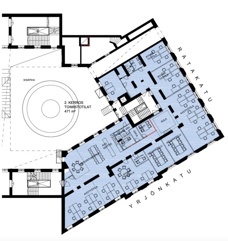 Tämä 471 m² tila sijaitsee kiinteistön 2. kerroksessa. Tila voidaan tarvittaessa jakaa kahdelle käyttäjälle. Tilat ovat betonilla, ja ne viimeistellään uudelle vuokralaiselle. Valmistuminen min. n 2,5kk ajassa. Kuvat ovat havainnekuvia kiinteistön tiloista.
