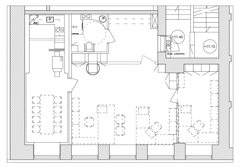 Tämä arkkitehtitoimiston itselleen viimeistelemä toimistotila sijaitsee rakennuksen 2. krs.