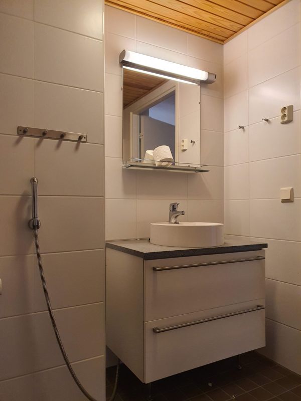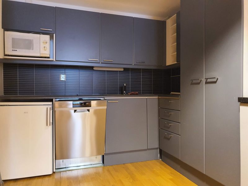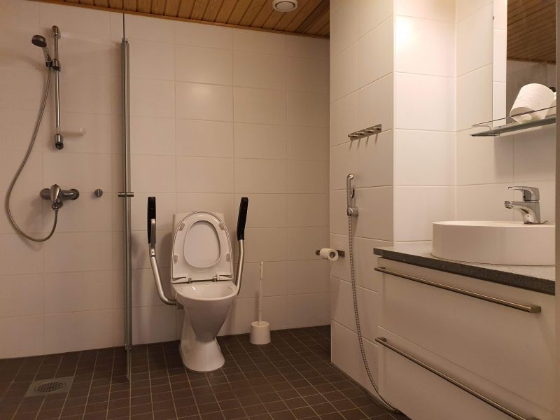 Valoisan avotilan lisäksi, yksi huone, iso keittiö ja wc/suihkutila inva-mitoituksella.