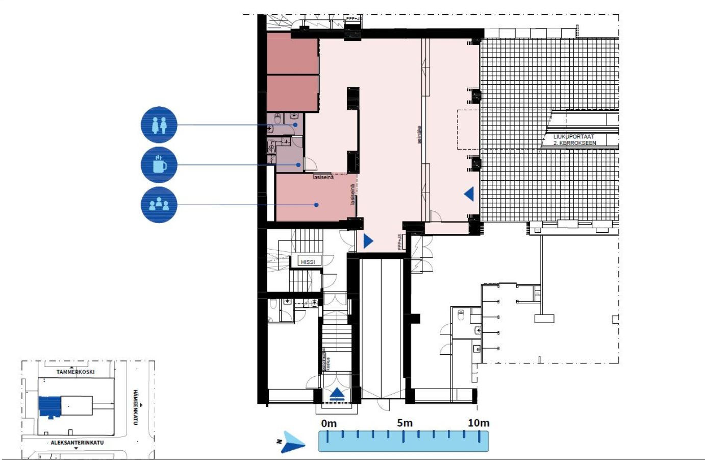 Vuokrataan katutason liikehuoneisto Tampereen ydinkeskustasta. Tilan koko on 169 m2. Tila sijaitsee Hämeenkatu 9:n sisäpihalla katutasossa. Samassa kiinteistössä on useita vaatekauppoja, kahviloita, pankki, kuntosali ja muita yrityksiä. Kyseessä on yhtenäinen liiketila, jonka takaosassa on kaksi huonetta, neuvottelutila ja sosiaalitilat. Isot näyteikkunat. Myös huoneet ovat lasiseinällä tehtyjä.