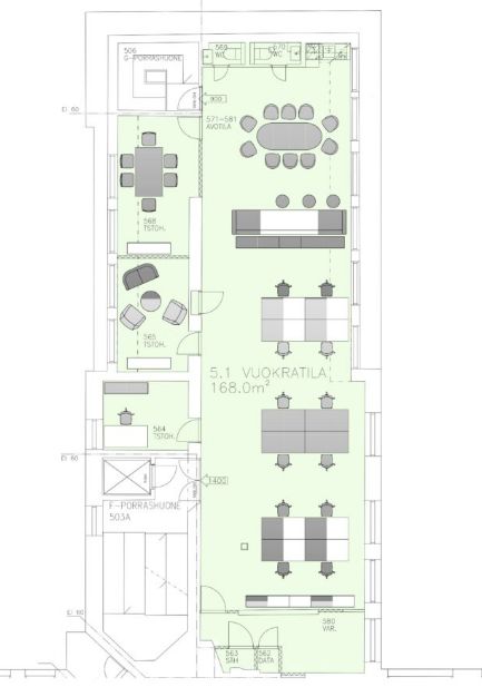 Tämä kombi-toimistotila sijaitsee 5. krs. Käynti rauhallisen sisäpihan puolelta.