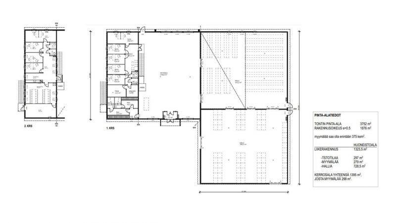 Tontin pinta-ala on 3752 m2. Rakennusoikeutta tontilla on yhteensä 1876 m2 (e= 0,5).