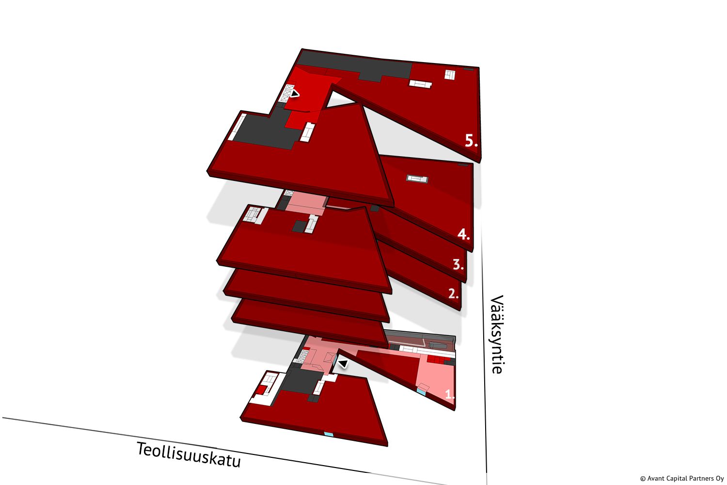 Vuokrattavana koko Vääksyntie 2 -rakennuksen kattava toimistotilakokonaisuus Vallilassa, OP:n pääkonttorina tunnetusta toimistokorttelista. Tässä suuressa ja erittäin tasokkaassa toimitilassa on valoisaa, pääosin avointa toimistotilaa viidessä kerroksessa. Rakennuksella on oma aula Teollisuuskadun ja Vääksyntien kulmasta.
