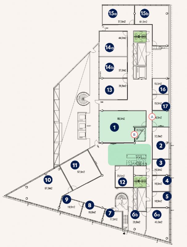 POOL pientoimistokerrokseen on toteutettu erikokoisia toimistoja joustavalla vuokrasopimuksella kokoluokassa 15 m² - 87,5 m².