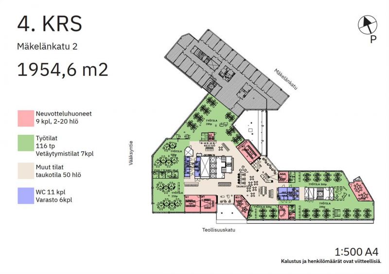 Vuokrattavana kiinteistön 4. kerroksen valoisa toimistotila 1954,6 m². Tila voidaan suunnitella vuokralaisen tarpeiden mukaan.