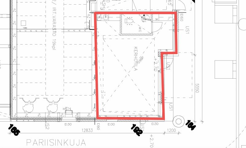 Liiketila asuintalon kivijalassa, hyvälla paikalla Arabianrannassa.
