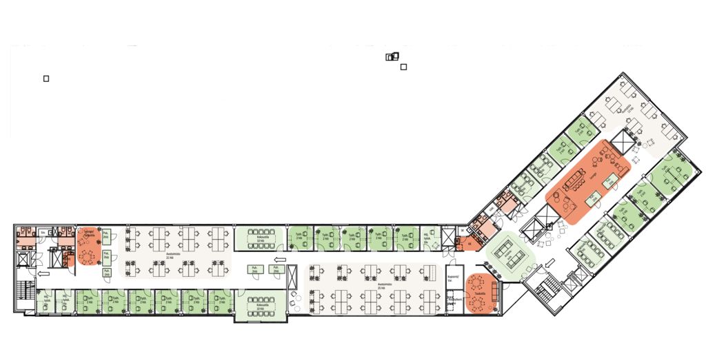Tämä 1174m2 toimisto sijaitsee kiinteistön 5. kerroksessa. Toimistossa on huoneita, avotilaa sekä omat keittiö- ja wc-tilat.