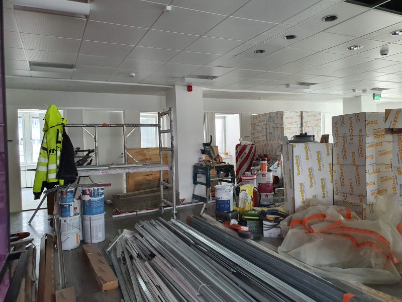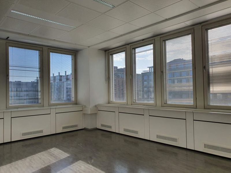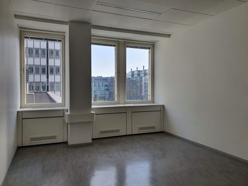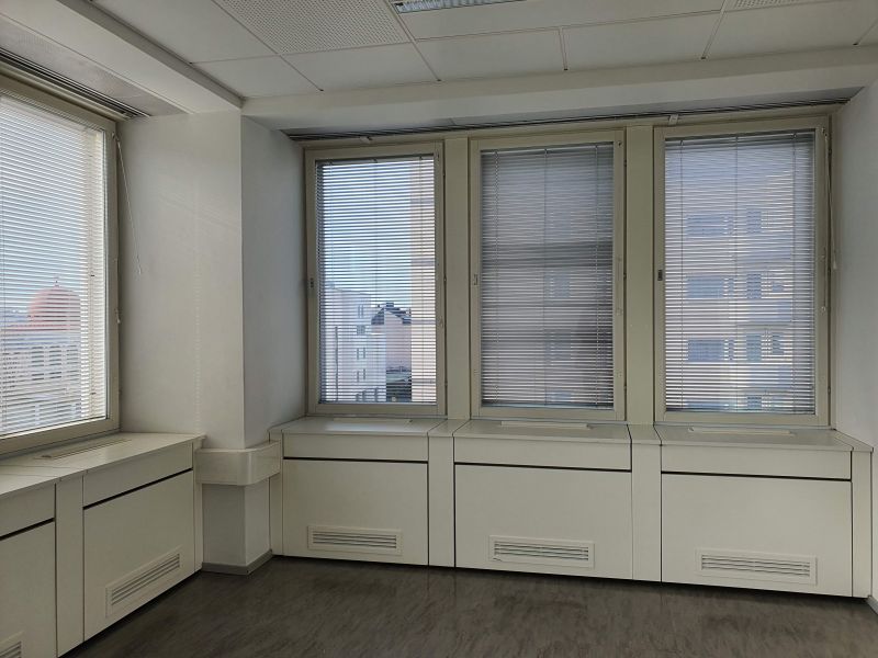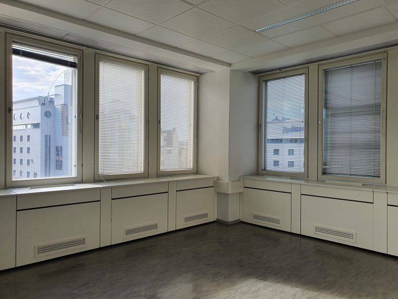 Erittäin valoisa tila, ikkunat kolmeen suuntaan. Hienot näkymät Kampin ylle.