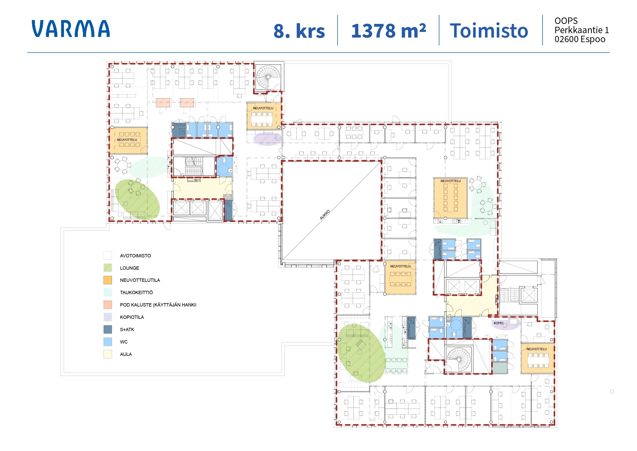 OOPS sijaitsee yhdellä pääkaupunkiseudun vetovoimaisimmista työpaikka-alueista Espoon Leppävaaran kupeessa. 2021 loppuvuodesta valmistuneet talot sijaitsevat Leppävaaran Hatsinanpuistossa Monikonpuron ja toimivien liikenneyhteyksien äärellä Kehä I:n, pääjunaradan ja Raide-Jokerin risteyksessä. Rakennuksella on BREEAM In-Use ympäristösertifikaatti arvosanalla Excellent. Upea moderni toimistotila, josta avautuvat kahdeksannen kerroksen avarat maisemat moneen suuntaan. Tilassa on kaikki nykyaikaiset fasiliteetit, joita onnistunut toimistoelämä vaatii mm. useita neuvottelu- ja työtiloja, omat wc-tilat ja useampi taukokeittiö. Tilan keskellä avautuu valokuilu, joka tuo ilmavutta ja valoa myös toimiston sisempiin osiin. Tervetuloa tutustumaan.