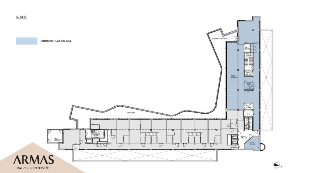 Vuokrataan laadukasta saneerattua toimistotilaa Herttoniemestä, vuokrattava tila on 5. kerroksen 303 m² toimistotila. Tila soveltuu toimistokäytön lisäksi opetus-. lääkärinvastaanotto,- ja kuntoutuskäyttöön.