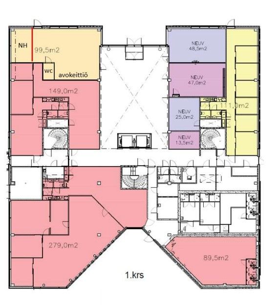 Vapaana kiinteistön 1. kerroksessa 99,5m2 avotoimistotila, jossa on myös yksi neuvottelutila. Tilaan on oma sisäänkäynti myös ulkopuolelta.
